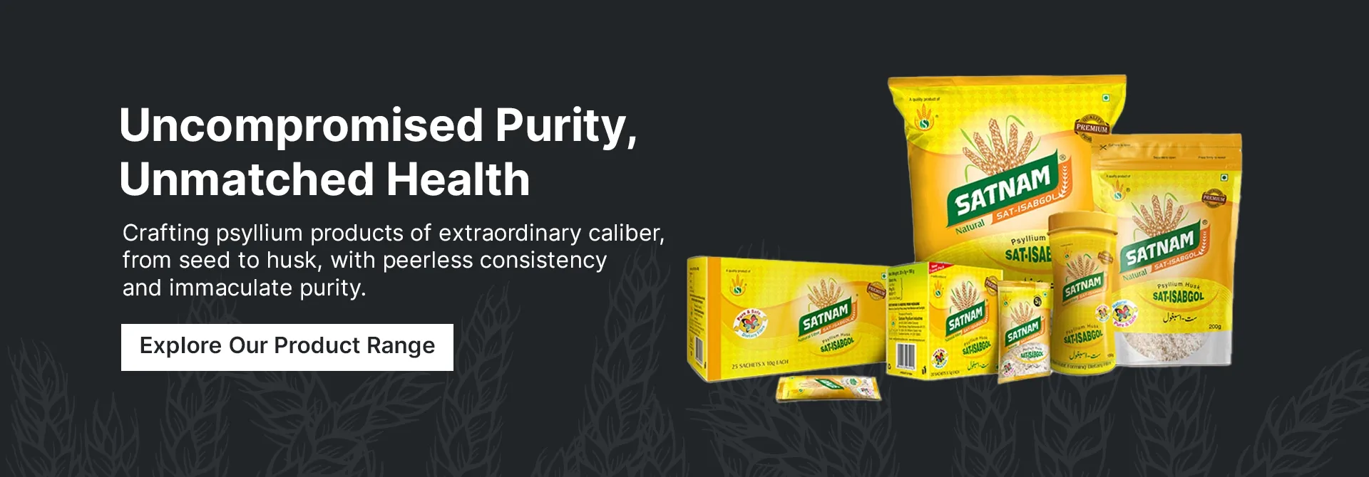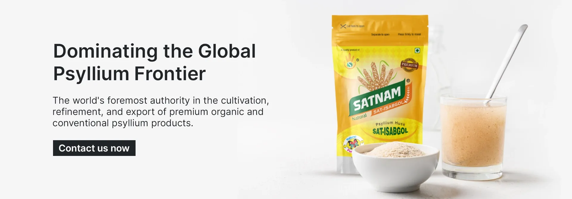 Satnam Psyllium Industries, established in 2000, is India’s leading manufacturer and exporter of Psyllium (Sat-Isabgol) products. With a modern manufacturing facility located near Unjha, Gujarat—Asia’s largest market yard for commercial cash crops—Satnam Psyllium delivers high-quality Psyllium Seeds, Psyllium Husk, and Psyllium Husk Powder.